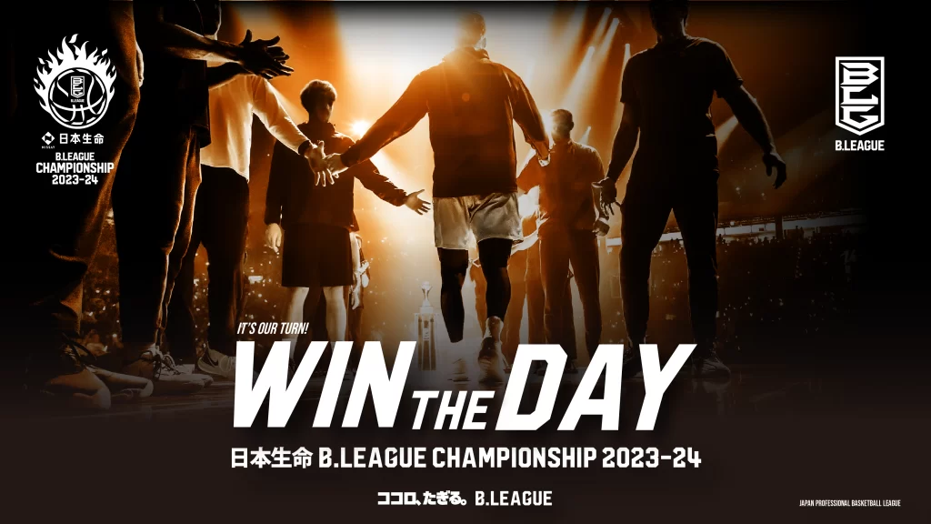 「WIN THE DAY」、直接的な訳は「今日は勝つぞ!」という意味ではあるものの、選手を奮い立たせ、ファンの皆様の期待感を煽る言葉として「日本生命 B.LEAGUE 2023-24 POSTSEASON」 大会テーマに設定いたしました。