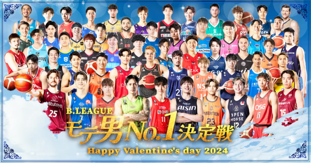 各クラブより1名ずつがエントリーし、 「B.LEAGUE No.1のモテ男は誰か?」をファン投票形式で競い合います。今年は総勢56名がエントリー!